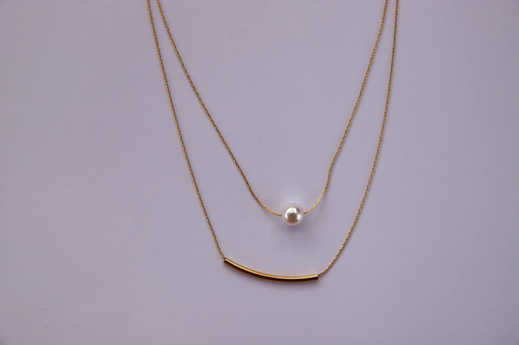 Su diseño de doble capa con colgante de perla aporta un toque moderno y sofisticado, ideal para elevar cualquier look, desde el día a día hasta ocasiones especiales.